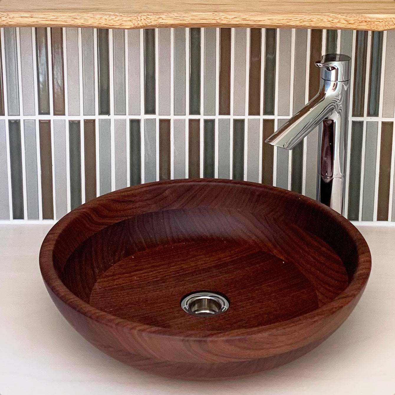 木製手洗器[ウォールナット] 400φ《直径400mm》デザイン[C]