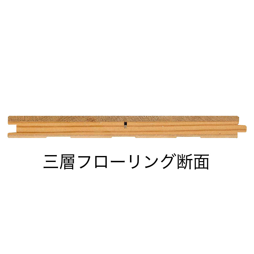 表層、中間層、裏層それぞれ違った木材を貼り合わせたものになります。 無垢に比べて収縮、膨張が起こりにくい構造です。